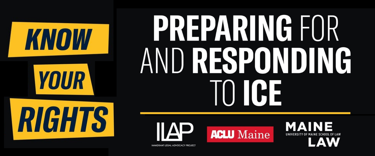 Through close coordination and shared planning, ILAP, the ACLU of Maine, and the Refugee and Human Rights Clinic at Maine Law developed and shared a Preparing for ICE resource to help communities navigate this moment. The guide provides updated Know Your Rights information, practical steps for preparing for direct interactions with ICE, and guidance for people who witness enforcement activity.