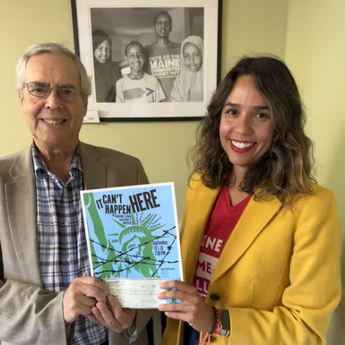 In September, the Irish Heritage Center in Portland hosted a reading of Sinclair Lewis’ play “It Can’t Happen Here,” helmed by USM retired theatre professor, director, actor and former state legislator, Harlan Baker. The play donated proceeds to ACLU Maine and ILAP.