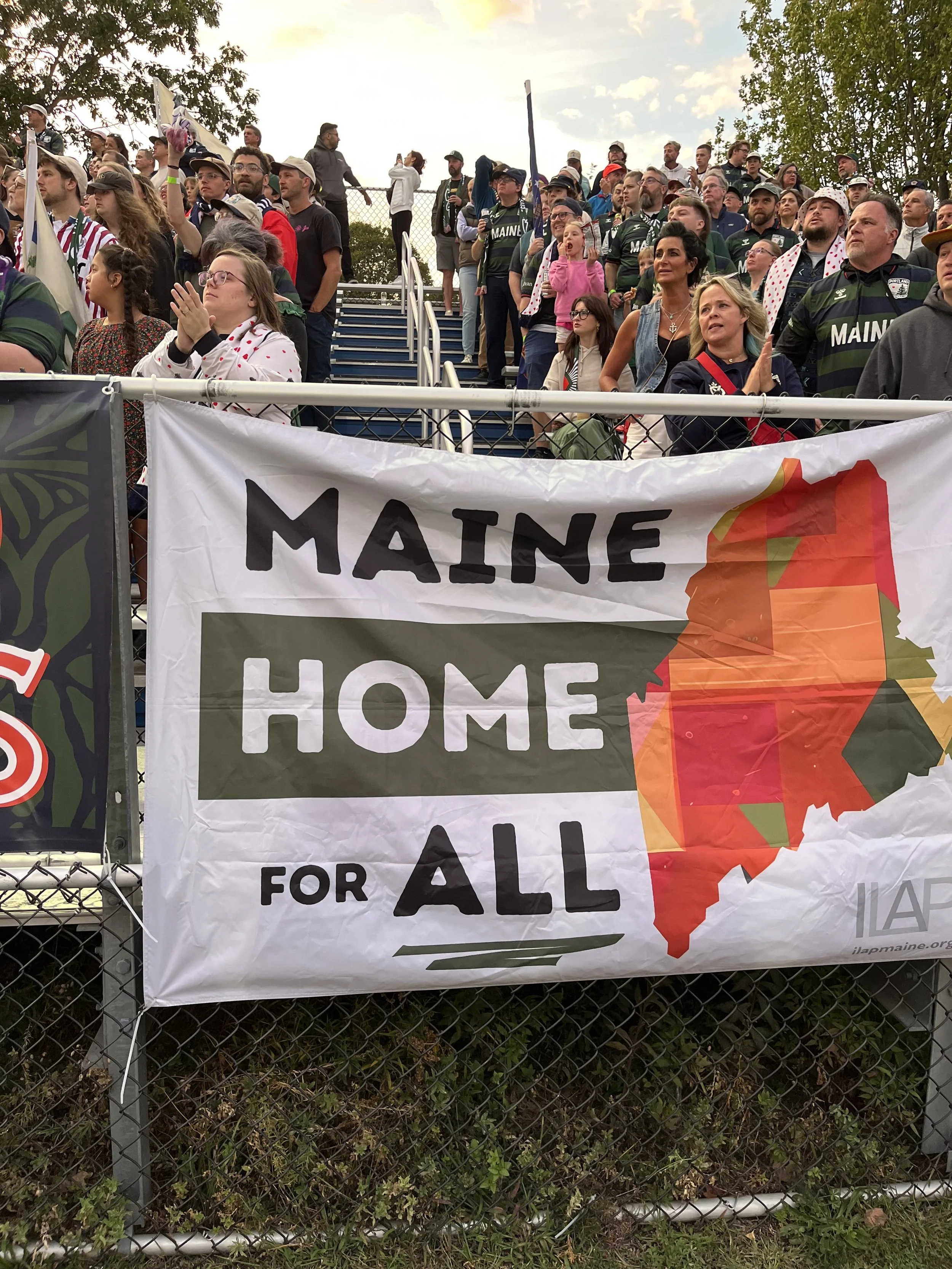 Our friends at Dirigo Maine created a custom Maine Home for All flag to show at the Portland Hearts of Pine soccer games.